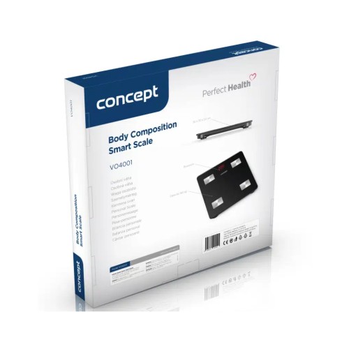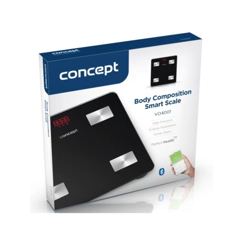 З розумними персональними вагами Concept VO4001 Perfect Health ви зможете контролювати своє здоров'я. Окрім ваги тіла, вони можуть аналізувати 12 інших параметрів, включаючи жировий прошарок, м'язову масу або метаболічний вік. Максимальна вимірювана вага - 180 кг, мінімальна вимірювана вага - 0,2 кг.