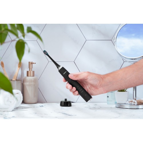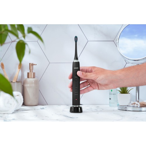 Електрична зубна щітка Ardesto ETB-211B чорна. Середньо-м'яка щетина насадок DuPont - ефективне очищення зубів при дбайливому ставленні до ясен та ротової порожнини.