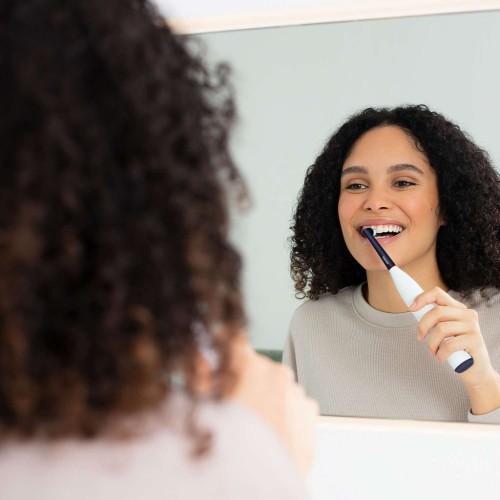 Осцилююча щітка з круглою насадкою обережно охоплює кожен зуб. Рухи повторюють чищення вручну, але працюють глибше й точніше. Це перевірена технологія, що ефективно видаляє наліт і підтримує здоров’я ясен.