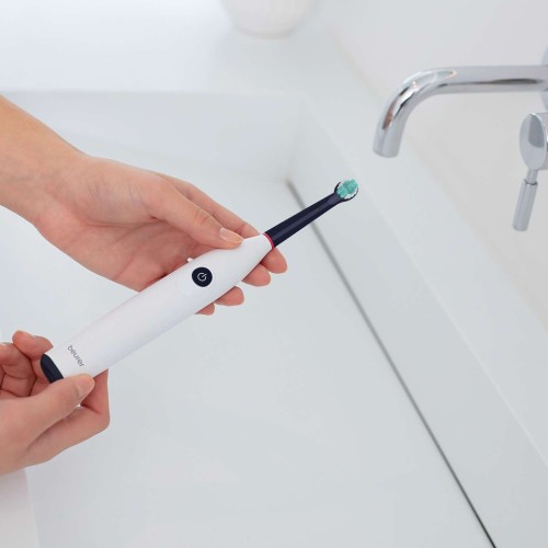 Осцилююча технологія з круглою насадкою м’яко охоплює зуби та ефективно очищає лінію ясен. Щітка проста у користуванні, приємна на дотик і не потребує зайвих налаштувань. Універсальні насадки, два режими та німецька якість для щоденного догляду, що приносить комфорт і результат.