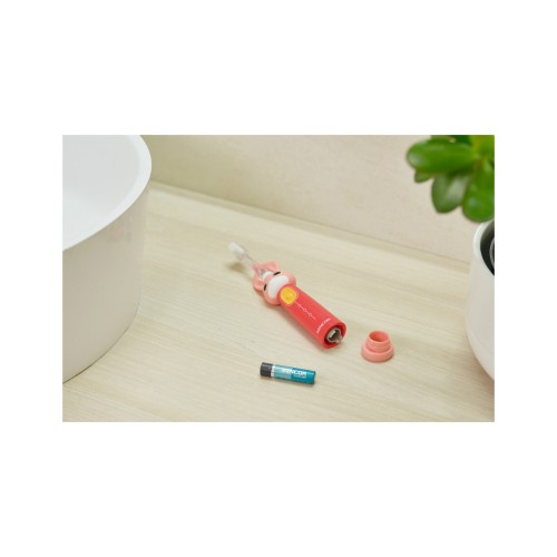 Дитяча електрична зубна щітка має яскравий дизайн та призначена для дітей віком до 3 років. Ергономічна конструкція ручки забезпечує комфортне захоплення. Дуже низьке споживання енергії при щоденному використанні батарейки вистачає на 30 днів. Рівень водонепроникності IPX7 (захист від занурення у воду). У комплект входить: 1 корпус зубної щітки, 1 насадка, 1 батарейка ААА.
