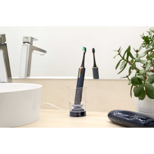 • Комплектація: 1 корпус щітки, 2 головки, 1 індукційний зарядний пристрій, 1 склянка, 1 дорожній футляр з USB-конектором і УФ-стерилізатором