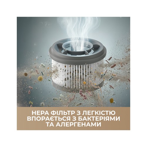 Фільтр ефективно очищає потік повітря, що проходить через пилосос, знижуючи рівень пилу та алергенів. Завдяки високому ступеню фільтрації повітря після прибирання стає чистішим і свіжішим.