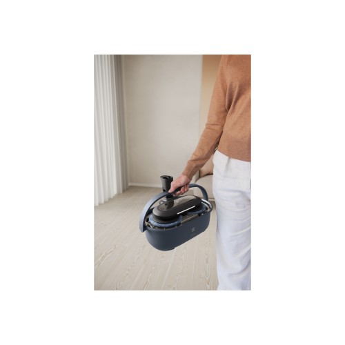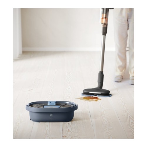 Пристрій має вбудовану функцію очищення, полоскання і сушіння насадки для вологого прибирання, оснащений подвійними резервуарами для води, які гарантують, що насадки промиваються чистою водою, а забруднена вода зберігається в окремому резервуарі.