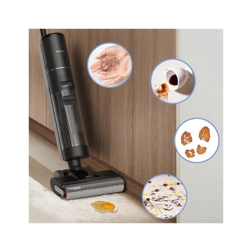 Щітка Dreame ефективно збирає не лише сухе сміття, а й вологі забруднення, забезпечуючи бездоганну чистоту підлоги.
