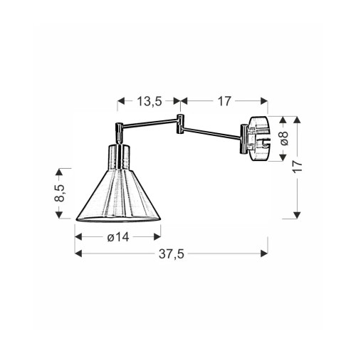 Оснащений одним цоколем E14, цей світильник забезпечує достатнє освітлення для будь-якого завдання або діяльності. Лампочка не входить до комплекту, тому ви можете вибрати тип і яскравість, які найкраще відповідають вашим потребам. Завдяки ширині 14 см і висоті 17 см цей настінний світильник компактний, але потужний, освітлюючи ваш простір м'яким і привабливим світлом.