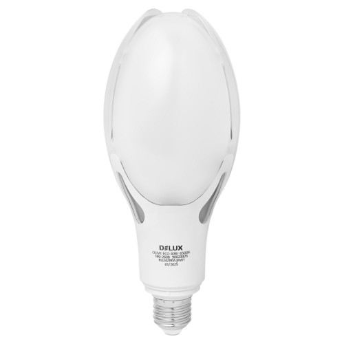 Лампочка Delux OLIVE ECO - Високоякісні компоненти забезпечують високу світлову віддачу 100 лм/Вт, безпечну та стабільну роботу лампи. Особлива структура лампи сприяє відміному тепловідводу і позитивно впливає на строк служби. Лампи призначені для використання у вуличних світильниках, для основного освітлення торгових центрів, магазинів, складів.