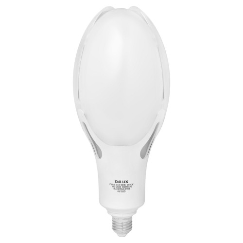 Лампочка Delux OLIVE ECO - Високоякісні компоненти забезпечують високу світлову віддачу 100 лм/Вт, безпечну та стабільну роботу лампи. Особлива структура лампи сприяє відміному тепловідводу і позитивно впливає на строк служби. Лампи призначені для використання у вуличних світильниках, для основного освітлення торгових центрів, магазинів, складів.