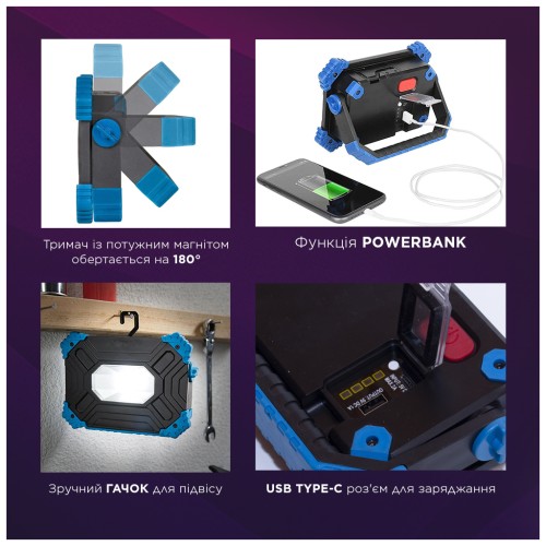 • Можливість використовувати прожектор як повербанк