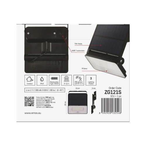 Прожектор EMOS сонячний світлодіодний 1000 лм IP54 4000K PIR (ZG121S)
