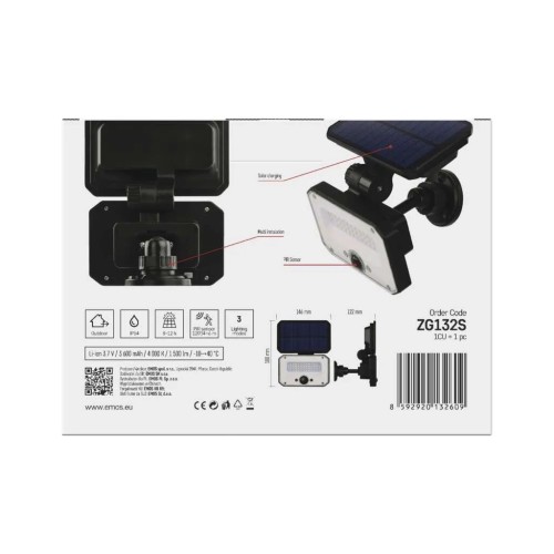 Прожектор EMOS сонячний світлодіодний 1500 лм IP54 4000K PIR (ZG132S)