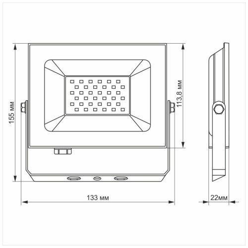 Корпус LED прожектора чудово протистоїть волозі, дощу, снігопадам та іншим погодним опадам. Клас захисту IP65. Під час роботи прожектора відсутнє мерехтіння, інфрачервоне або ультрафіолетове випромінювання. Колірна температура - 6000К (денне світло). Кут розсіювання світла - 120°, що дозволяє якісно освітити приміщення. Сила світлового потоку-80Лм/В, а сумарний світловий потік прожектора становить 2400Лм.