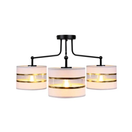 Абажур виготовлений з поєднання текстилю та акрилу, що надає йому розкішного та елегантного вигляду. Три лампи забезпечують достатнє освітлення, що робить його ідеальним для кафе, ресторанів, кухонь, передпокоїв і спалень. Поєднання білого, золотого та прозорого кольорів абажура додає вишуканості та універсальності, роблячи його сумісним з широким спектром стилів інтер'єру.