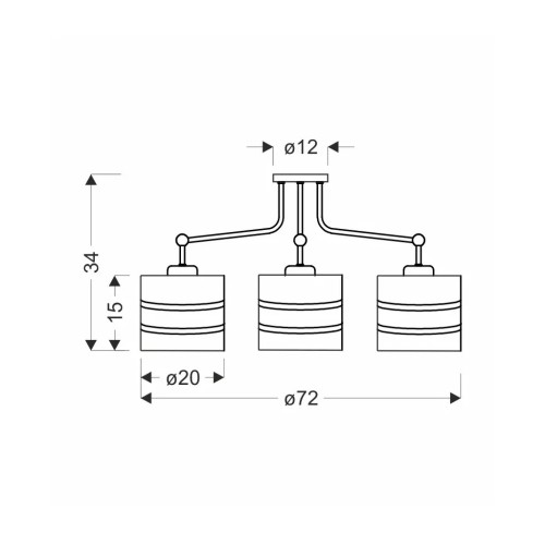 Основа люстри виготовлена з металу і має чорний колір, що створює вражаючий контраст з абажуром. З висотою 34 см і шириною 72 см, вона має помітну присутність, яка привертає увагу. Люстра не комплектується лампочками, але в ній використовується тип цоколя E27, що дозволяє вибрати ідеальний тип лампочки для створення бажаного світлового ефекту.