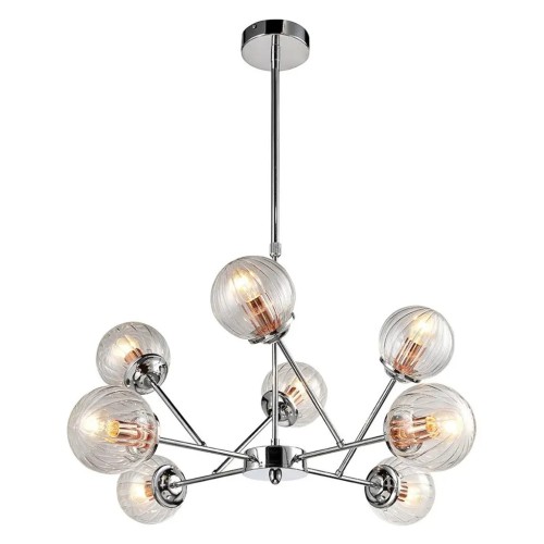 Люстра Candellux 38-67289 BEST - приголомшливе доповнення до будь-якого житлового простору. Завдяки сучасному дизайну та витонченому хромованому покриттю, ця люстра додасть нотку елегантності будь-якій кімнаті. Прозорі скляні плафони забезпечують м'яке та привабливе світло, а металева основа гарантує міцність і довговічність.