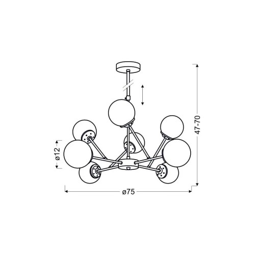 Ця люстра має 8 цоколів E14, що забезпечує достатнє освітлення у великих приміщеннях. Ширина 78 см і висота 70 см роблять її ідеальним розміром для різних приміщень, включаючи вітальні, кухні та спальні. Незалежно від того, чи хочете ви оновити освітлення у своєму будинку або офісі, ця люстра є універсальним і стильним рішенням.