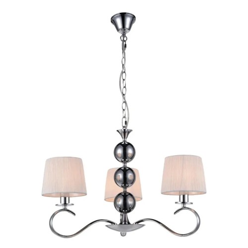 Серія CLARA демонструє поєднання металу та текстилю, створюючи гармонійне поєднання матеріалів. Білі текстильні абажури випромінюють м'яке та розсіяне світло, створюючи затишну та привабливу атмосферу в будь-якому приміщенні. Хромоване покриття основи додає сучасний штрих, що робить цю люстру універсальним вибором як для традиційних, так і для сучасних інтер'єрів.