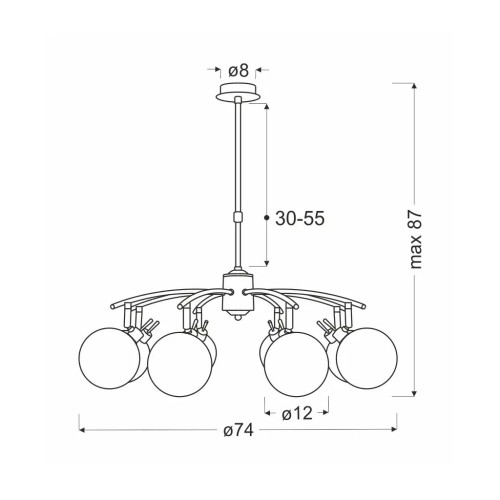 Завдяки 8 патронам з цоколем G9, ця люстра забезпечує ідеальну кількість світла для створення затишної та гостинної атмосфери. Завдяки ширині 74 см і висоті 87 см, ця люстра має значну присутність, яка покращить естетику будь-якої кімнати.