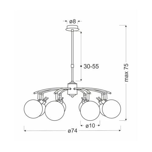 Завдяки 8 лампам з цоколем G9 ця люстра забезпечує достатнє освітлення вашої кімнати. Ширина 74 см і висота 75 см роблять її ідеальним розміром для середніх і великих приміщень. Якщо ви хочете створити затишну атмосферу або зробити кімнату яскравішою, ця люстра дає вам гнучкість у виборі освітлення, яке відповідає вашим потребам.