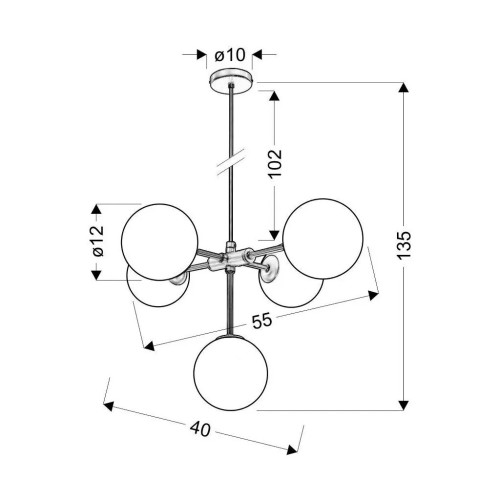 Ця люстра завширшки 57 см і заввишки 135 см має значну присутність і буде помітною в будь-якому просторі. Її 40-сантиметровий виступ додає кімнаті глибини та об'єму. Люстра Candellux 35-73778 Mati - це універсальне та функціональне світлове рішення, яке поєднує в собі стиль і практичність, що робить її цінним доповненням до будь-якого домашнього або комерційного простору.
