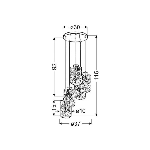 Завдяки ширині 37 см і висоті 115 см ця люстра ідеально підходить для різноманітних приміщень. Будь то ресторан, кухня, магазин або передпокій, ця люстра універсальна і здатна покращити атмосферу будь-якого приміщення. Зверніть увагу, що лампочки не входять до комплекту цієї люстри, тому ви можете налаштувати освітлення на свій смак.