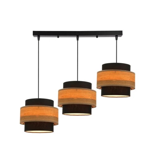 Люстра Candellux 33-17895 Twin - стильний і сучасний освітлювальний прилад, який покращить атмосферу будь-якої кімнати. Завдяки унікальному дизайну серії Twin, ця люстра має два абажури з дерева та текстилю, що забезпечують тепле та затишне світіння. Поєднання коричневого та чорного кольорів абажурів додає елегантності та вишуканості загальному дизайну.