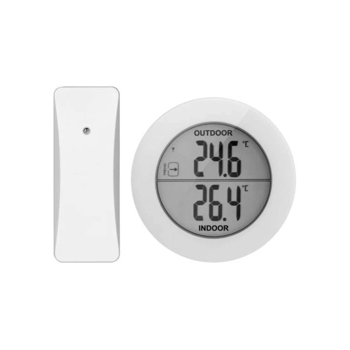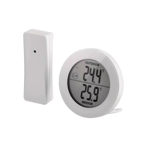 Термометр E0129 з бездротовим датчиком від чеського виробника EMOS — це стильний цифровий термометр круглої форми в мінімалістському дизайні.