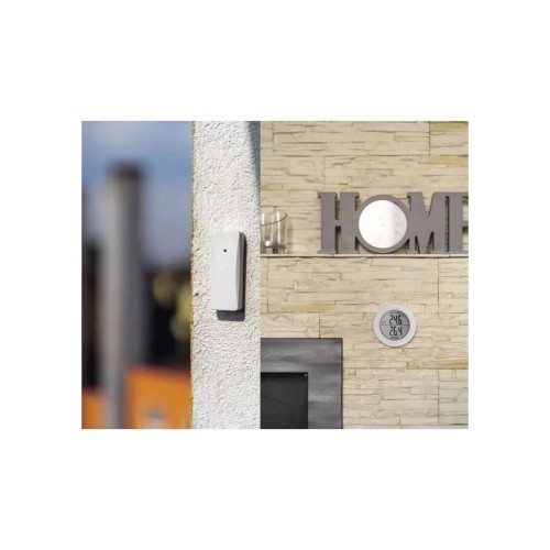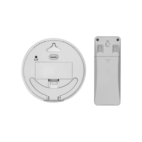 Чіткий цифровий дисплей із підсвіткою зображає час та актуальну температуру в приміщенні та на вулиці. Обладнаний бездротовим датчиком з дальністю приймання сигналу до 80 м. Завдяки вбудованій відкидній підставці на корпусі термометр можна легко встановити на будь-яку рівну поверхню.