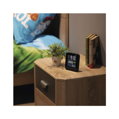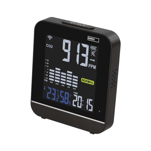 Монітор якості повітря Gosmart має безліч корисних функцій. Завдяки чіткому світлодіодному дисплею з постійним підсвічуванням ви можете отримувати інформацію про поточний стан CO2 за допомогою трьох різних колірних рівнів. На дисплеї також чітко відображається поточний час, температура та вологість у контрольованому приміщенні. У програмі EMOS GoSmart ви зможете побачити мінімальні та максимальні значення контрольованих параметрів. І бонус наприкінці! Завдяки наявності дисплея з годинником прилад можна використовувати як будильник.