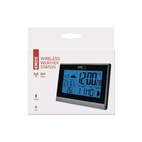 Бездротова метеостанція E3070 від чеського виробника EMOS. Бездротова, настільна метеостанція з чітким цифровим дисплеєм та світлодіодною підсвіткою. Надає актуальну інформацію про поточний час, дату, температуру, вологість, фази місяця й насамперед прогноз погоди, доступний на подальші 12-24 години. Температура вимірюється як у приміщенні, і на вулиці. Обладнана бездротовим погодостійким датчиком, з дальністю приймання сигналу до 30 м, може бути поєднана з такими 3 датчиками, і дані з них легко зображаються на дисплеї.