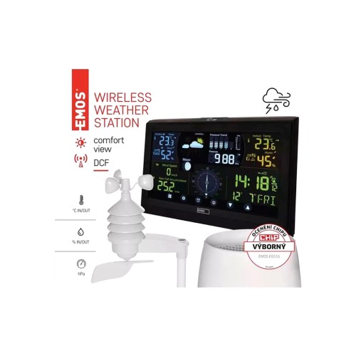 Вас цікавить поточна температура вдома та на вулиці? Збираєтеся в подорож і хочете дізнатися, чи світитиме сонце або піде дощ? Вас цікавить вологість, швидкість вітру або, можливо, поточна фаза місяця? Вам більше не потрібно стежити за невизначеними прогнозами погоди, ви можете дізнатися все, що вам потрібно, швидко та не виходячи з дому завдяки професійній бездротовій метеостанції EMOS E6016.