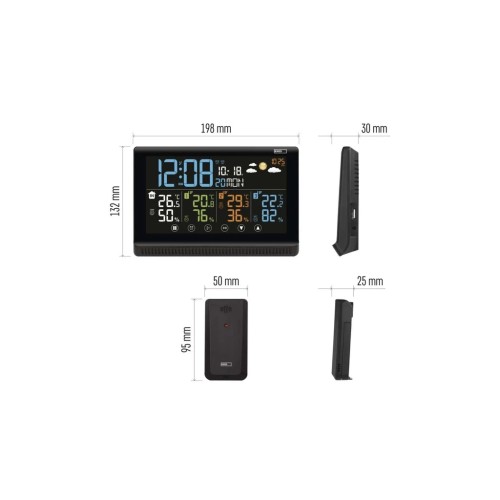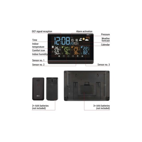 • Живлення станції: блок живлення 5 V DC/1 000 mA (в комплекті) + 3×1,5 V AAA (не входять до комплекту)