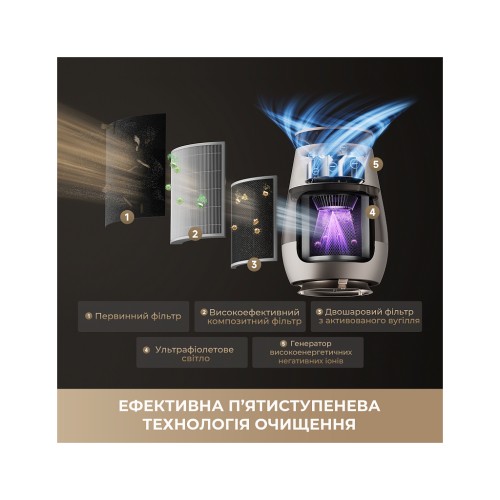 Динамічна світлова смуга візуально показує якість повітря. За високого рівня PM2.5 автоматично активується режим очищення повітря.