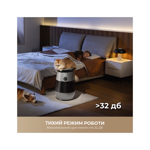 датчик запахів; датчик забруднення фільтра; датчик якості повітря; таймер; пульт дк; підсвічування; проти алергенів; проти вірусів і бактерій; проти запахів; проти пилу; проти шерсті тварин; проти пилку; Режим сну; Дисплей; Блокування від дітей