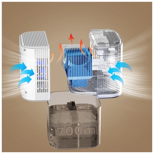 Сенсорна панель управління та індикатори дозволяють легко відстежувати режим роботи й рівень вологості у приміщенні. Технологія Пельтьє є екологічною альтернативою класичним компресорним моделям, що робить пристрій безпечним для дому. Це зручне рішення для кімнат, де важлива тиша та низьке енергоспоживання.