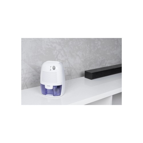 Осушувач використовує технологію Пельтьє, що робить його легким та тихим. Пристрій засмоктує всередину повітря, яке потім рівномірно нагрівається та осушується, а молекули вологи конденсуються в ємність з водою об'ємом 500 мл.