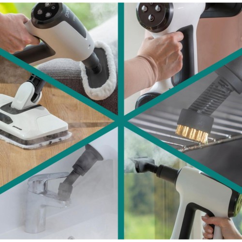 Пароочисник Gorenje SC1506W призначений для очищення підлоги гарячою парою без мийних засобів. Потужність 1500 Вт і тиск пари 0,2 бар дозволяють швидко розм’якшувати та видаляти забруднення. Резервуар на 400 мл і кабель довжиною 5 м роблять пристрій зручним для щоденного використання в квартирах чи будинках середнього розміру. Легка конструкція вагою 2,5 кг полегшує маневрування.