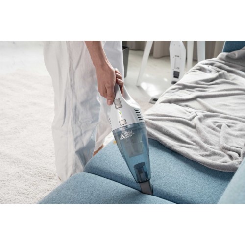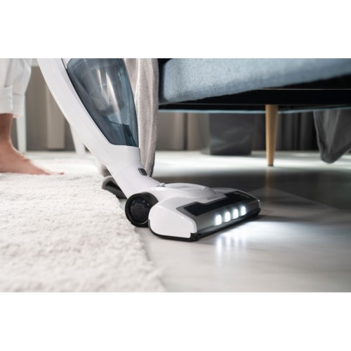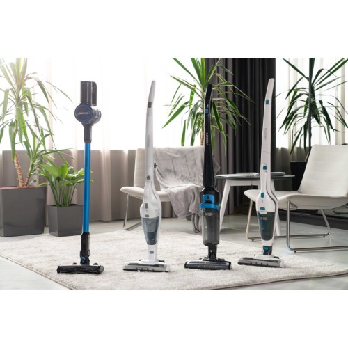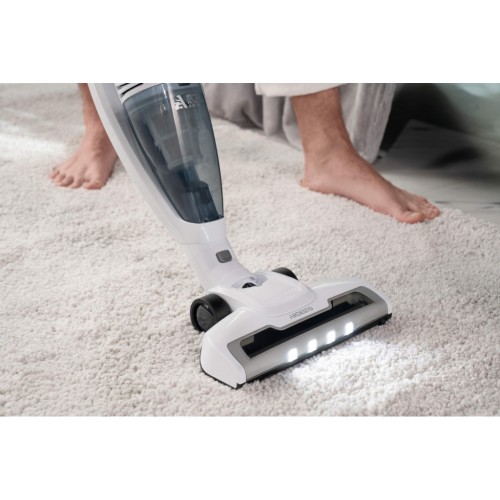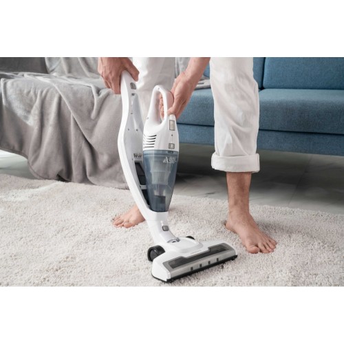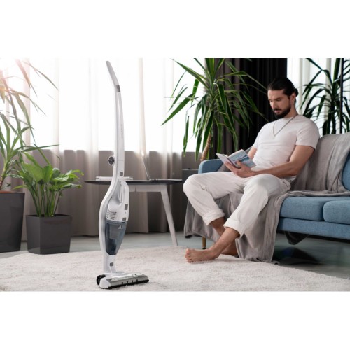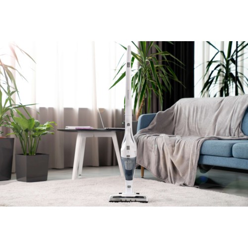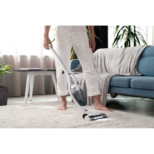 Бездротовий акумуляторний пилосос із потужністю всмоктування 29 Вт допоможе ефективно прибрати приміщення, адже оснащений HEPA-фільтром, що затримує дрібнодисперсні часточки та пил. Неспростовною перевагою, зокрема для людей, які страждають від алергії на домашній пил, є те, що під час збирання сміття, пилосос ще й очищує повітря. У комплекті постачання є кріплення для вертикального встановлення на стіну та дві насадки: для прибирання важкодоступних місць та турбощітка.