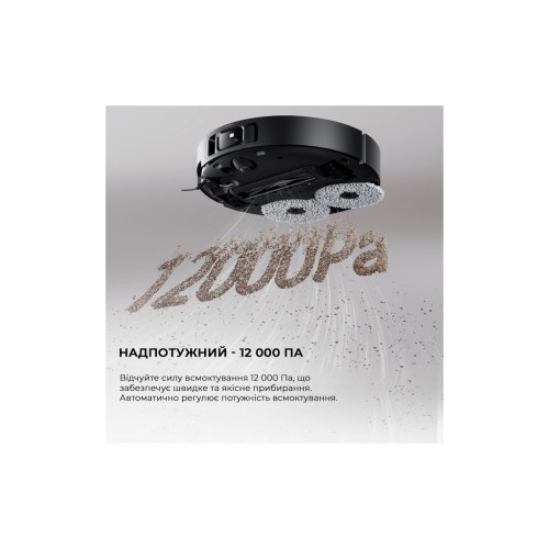 Dreame X40 Ultra Complete Black збирає пил та сміття з силою всмоктування до 12 000 Па. Датчик розпізнавання забруднень допомагає йому виявляти рівень забруднень та автоматично підлаштовувати потужність під нього. Це ідеальний баланс між якісним прибиранням та енергоефективністю.
