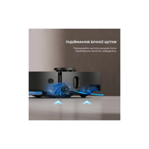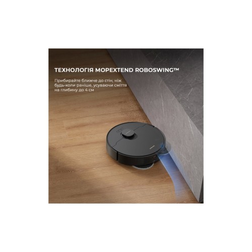Дві круглі обертові насадки Dreame X40 Ultra Complete Black натирають підлогу, наближаючи результат до ідеального. Чисто буде навіть під стінами, адже одна з насадок реалізована за технологією MopExtend RoboSwing. Вона висувається на 4 см, продовжуючи мити підлогу вздовж плінтусів так само якісно, як і в інших зонах.