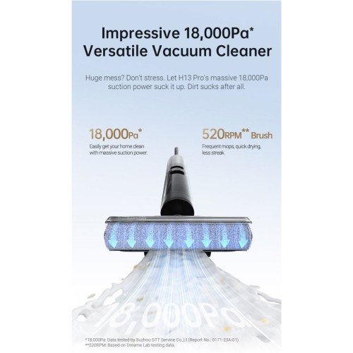 Сучасний та потужний миючий пилосос Dreame Wet and Dry Vacuum Cleaner H13 PRO розроблений спеціально для швидкого та ефективного прибирання Вашої оселі. За допомогою величезної сили всмоктування в 18000Па та високоефективного акумулятора на 4900 мАч дозволяють прибрати будь-які Ваші покриття для підлоги максимально якісно.