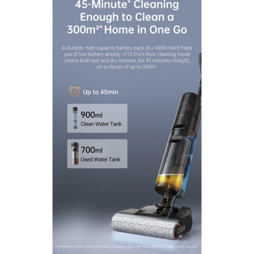 H13 PRO має вбудовану функцію автоматичного налаштування прибирання та вибирає відповідний режим для різноманітних ступенів забруднення, все це відображається на LED дисплеї.