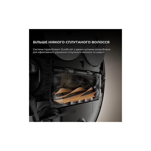 Додатково до цього, Dreame X50 Ultra має інноваційну технологію HyperStream DuoBrush, використання двох щіток для більш ретельного прибирання, видаляє навіть заплутане волосся з потужністю всмоктування в 20000 Па, що забезпечує якісне очищення поверхонь з мінімальними зусиллями з вашого боку.