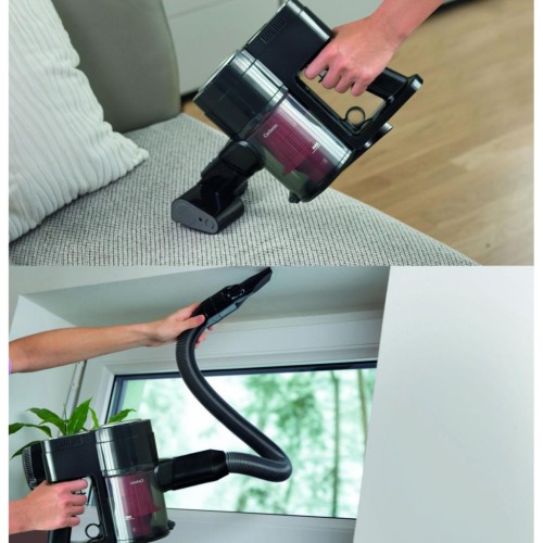 Завдяки циклонній системі фільтрації разом із НЕРА-фільтром, він ефективно затримує всі дрібні частки пилу. Його ємність пилозбірника 0.5 літра дозволяє зосередитися на прибиранні, не відволікаючись на постійне очищення контейнера. Індикатор заряду акумулятора, розташований на ручці, завжди підкаже, коли потрібно зарядити пристрій, щоб жодного разу не перервати процес очищення.