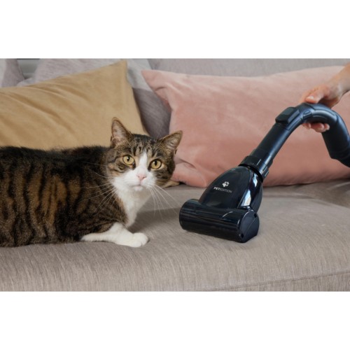 Пилосос PET Series створений спеціально для ефективного прибирання у домах, де є тварини. Контейнер об’ємом 3,3 л та подвійна система HEPA-фільтрації забезпечують чисте повітря та якісне збирання шерсті. Телескопічна металева трубка, сенсорне управління та плавний запуск двигуна роблять використання зручним та комфортним. У комплекті є додаткові насадки, включно з щіткою для паркету та вузькою насадкою для меблів.