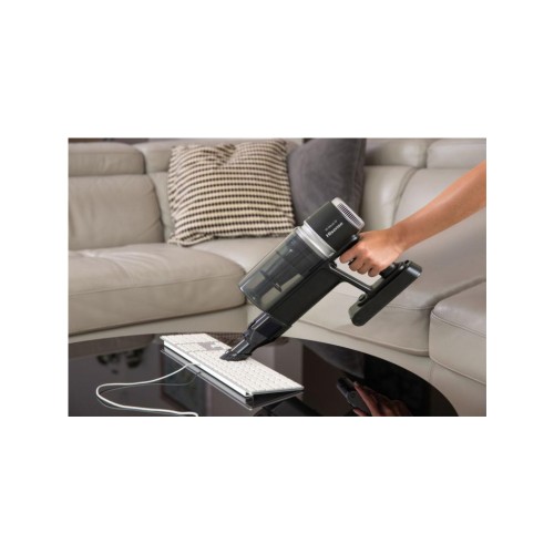 Вертикальний пилосос перетворюється в ручний за лічені секунди. Він постачається з великою кількістю приладдя, як-от алюмінієва всмоктувальна трубка, що складається, гнучкий шланг, турбощітка з електроприводом, щілинна насадка, щітка для видалення пилу та щітка для ліжка. Усі насадки можна використовувати в поєднанні з обома всмоктувальними трубками, тому комбінації і можливості знайти ідеальну пару для будь-яких потреб безмежні.