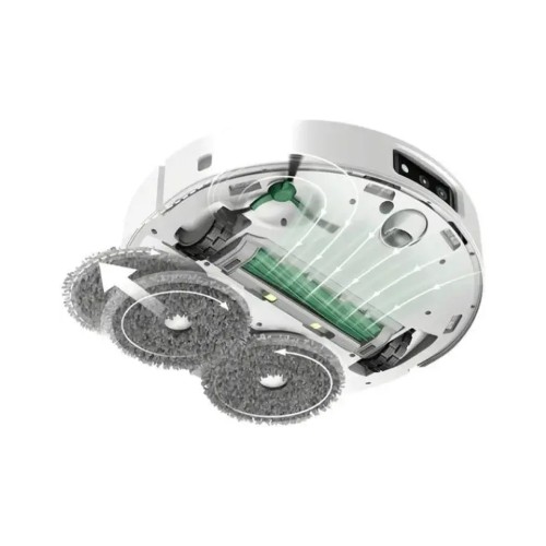 Робот ефективно видаляє забруднення завдяки потужності всмоктування 7.000 Па, гумовій основній щітці і бічній щітці, яка ретельно прибирає кути. Дві обертові серветки DualClean з технологією PerfectEdge і інтелектуальним відтиранням SmartScrub ефективно усувають навіть стійкі плями з твердих підлог.