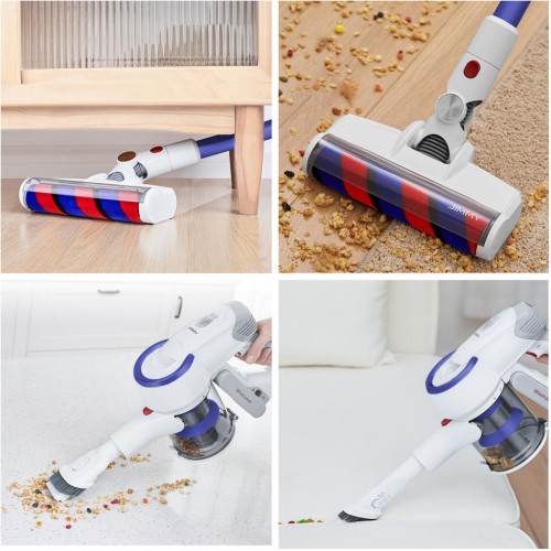 Комбінована щітка з м'якого і твердого волокна діаметром 55 мм може збирати всю пил і частинки, прибирати бруд і сліди на підлозі, полірувати поверхню під час прибирання. Спеціальна технологія ручного бездротового пилососа Xiaomi JIMMY JV53 Lite Blue запобігає намотування волосся і вовни на щітку. А спеціально розроблена система для матраца, що приводиться в рух незалежним двигуном, за рахунок інтенсивних ударів і сильного всмоктування видаляє пилових кліщів з глибини поверхні.
