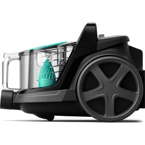 Пильозбірник на 1,5 літра відрізняється гігієнічністю й легкістю спорожнення – його конструкція дозволяє здійснити очищення однією рукою. До того ж, компактний дизайн пристрою із ручками на передній та верхній частинах забезпечує комфортне перенесення, а м'яка вставка та гумові колеса дбайливо захищають покриття вашого дому від подряпин.