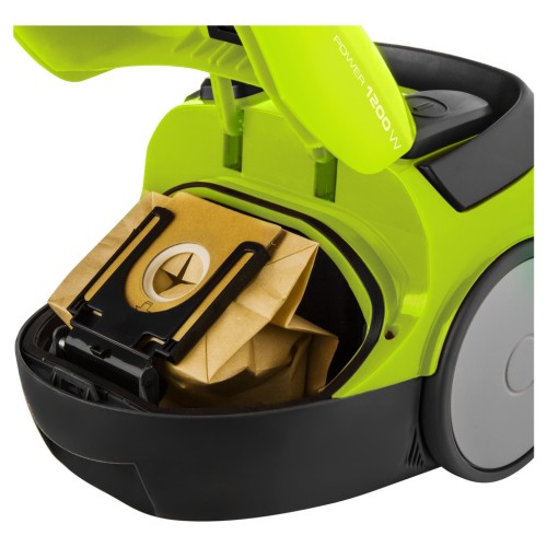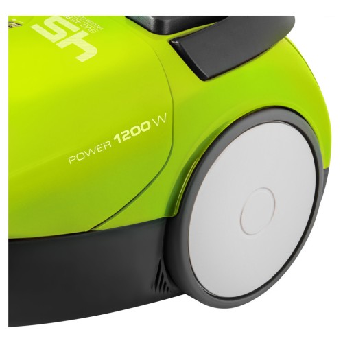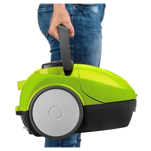 Виконаний в обтічному корпусі з міцного пластику і оснащений широкими прогумованими колесами, він швидко маневрує під час роботи, огинаючи крісла і торці меблевого гарнітура. Широка рукоятка буде зручною при перенесенні пилососа між кімнатами. Базовий комплект насадок включає універсальну підлога / килим і комбіновану щелевую насадку з густою щіткою. Остання буде корисною для прибирання важкодоступних місць і м'яких меблів.